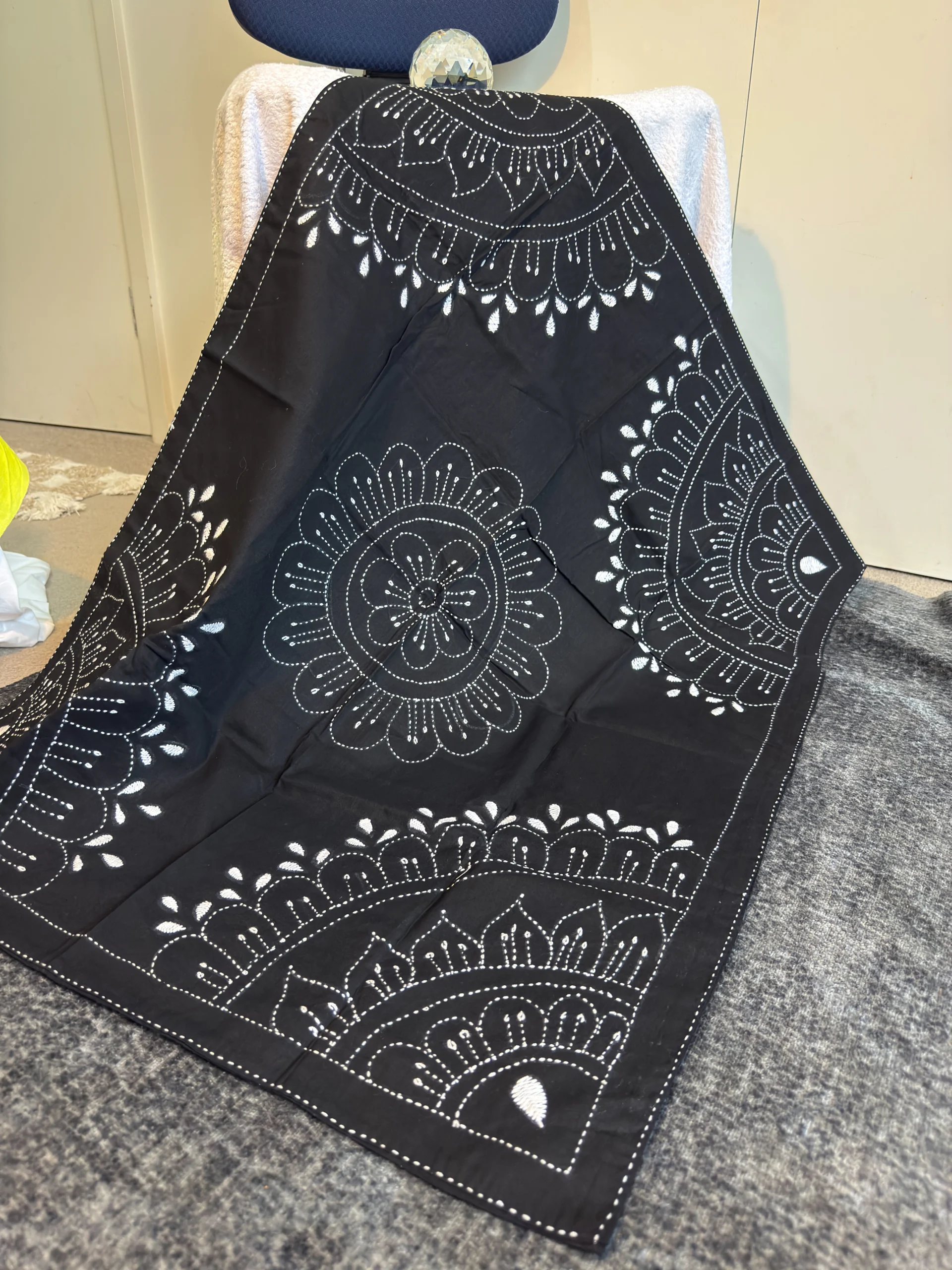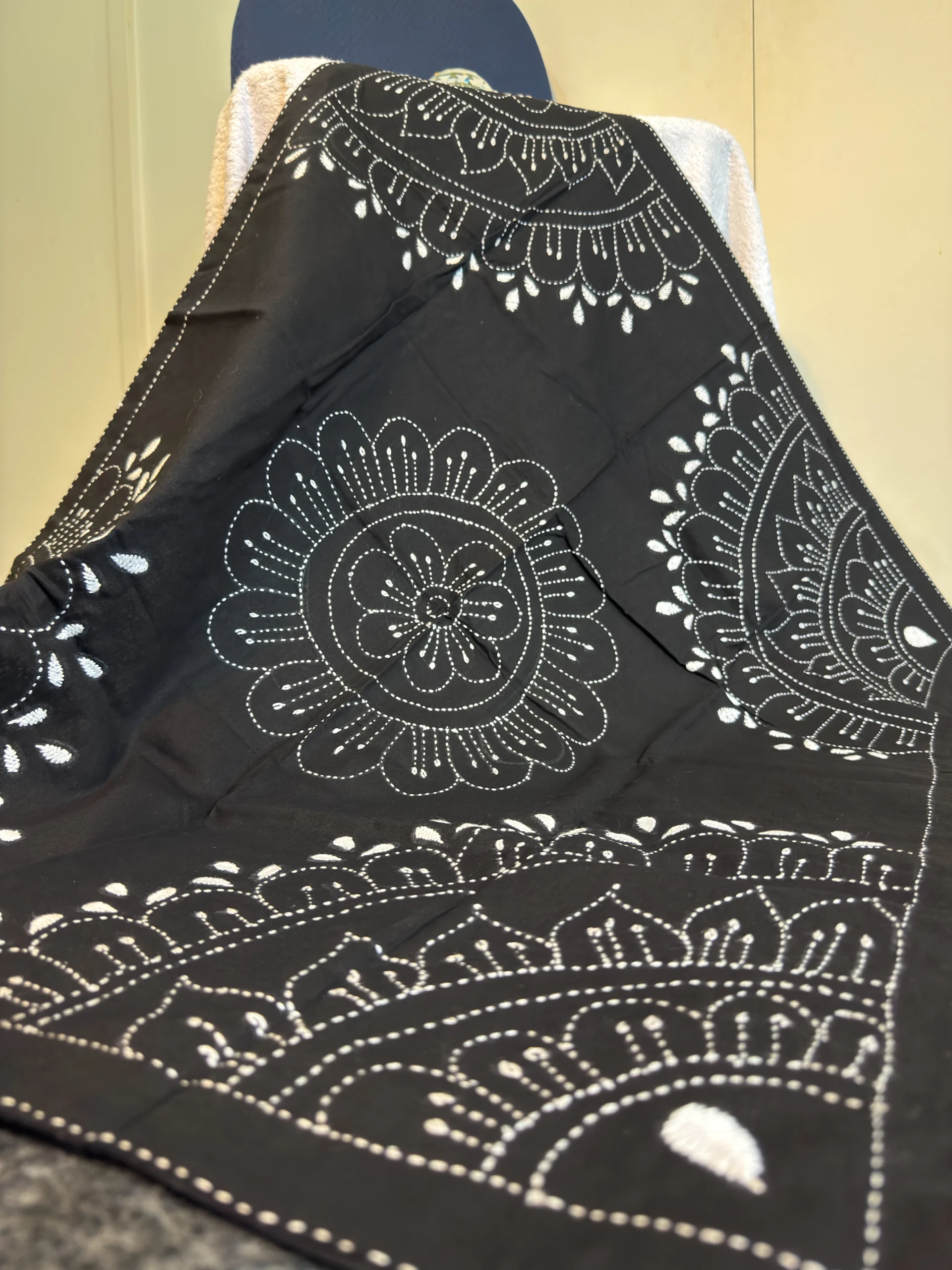 Kantha is a traditional Bengali quilting style—layers of cotton hand-quilted in running stitch and decorated with embroidered motifs. Soft, lightweight, and made to be used every day—personalised with a name, date, and a short line (4–5 words).