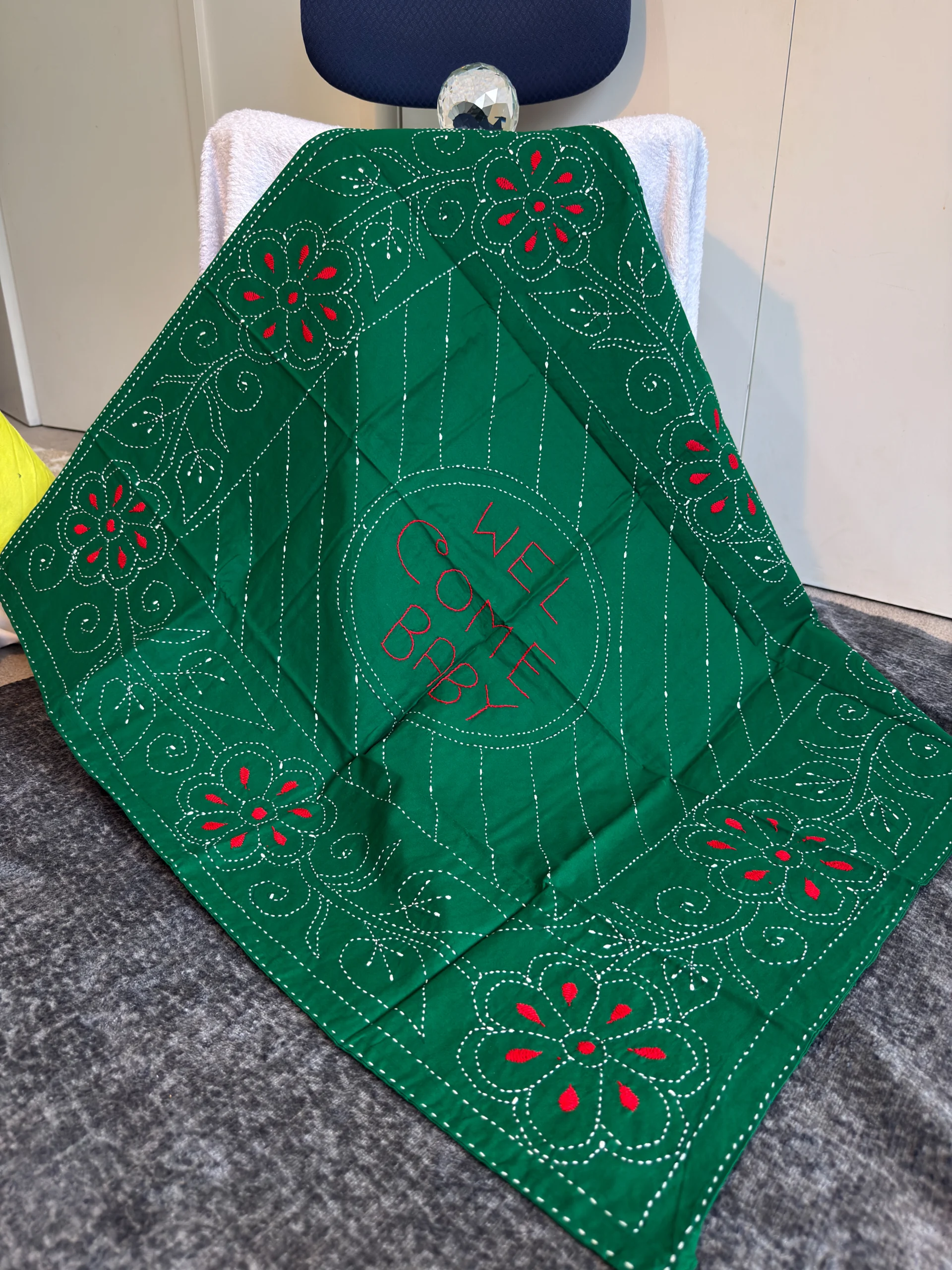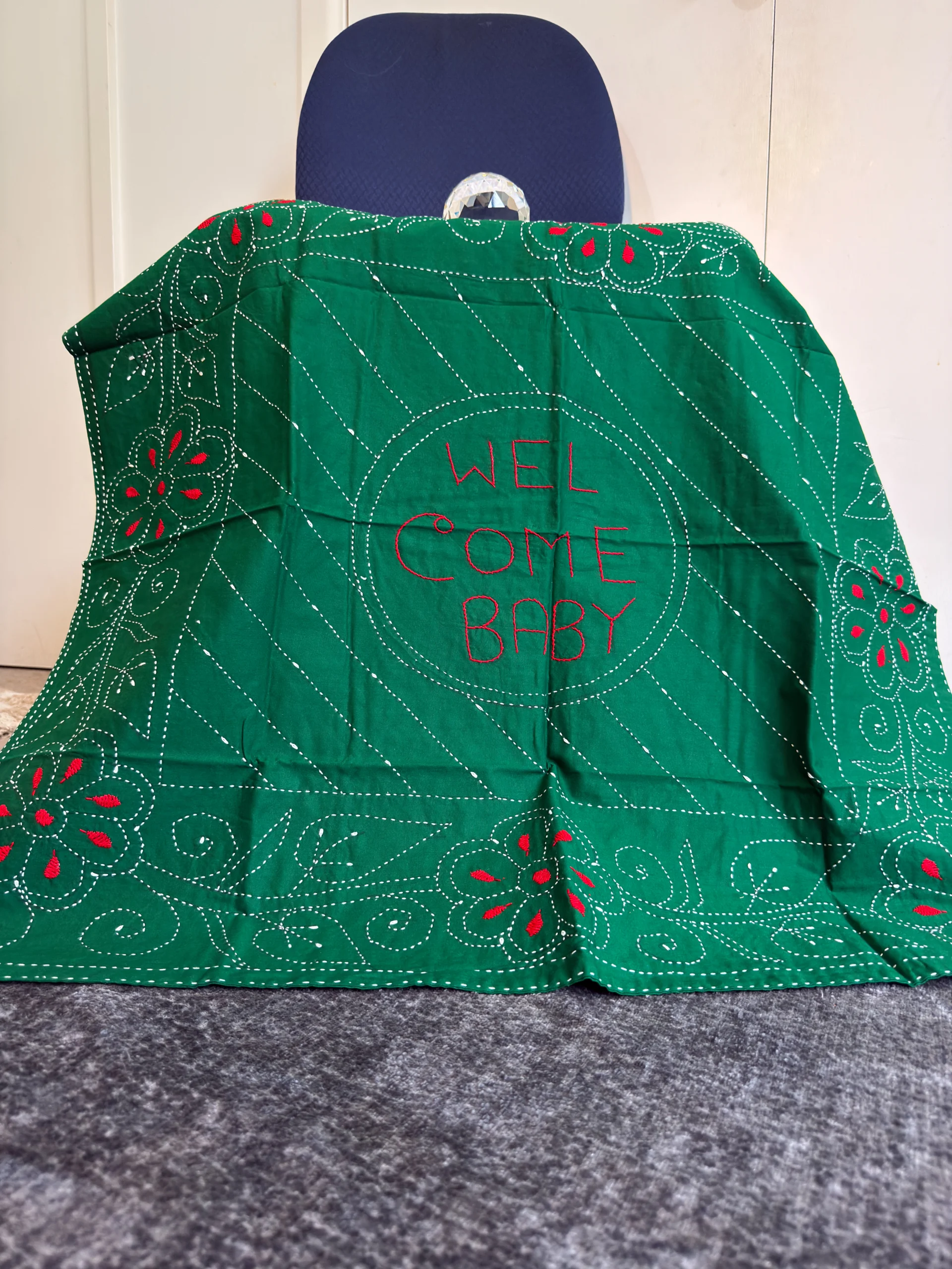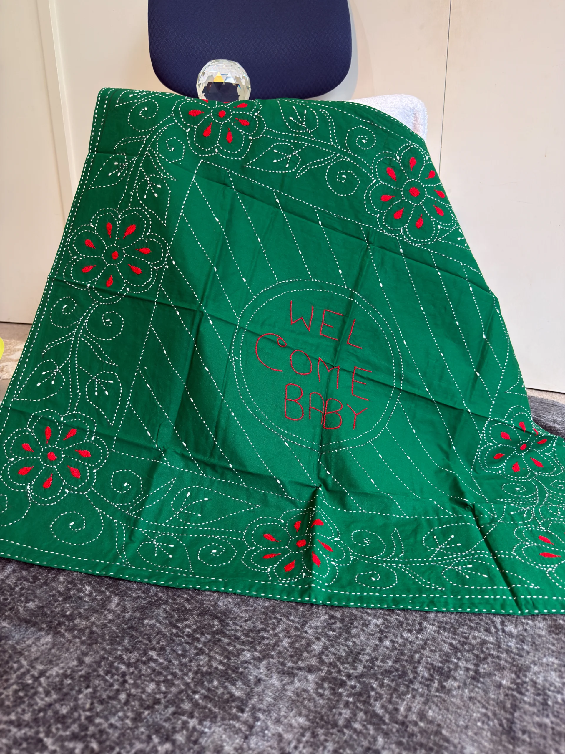 Deep green “Welcome Baby” keepsake—classic, meaningful, and photo-ready.