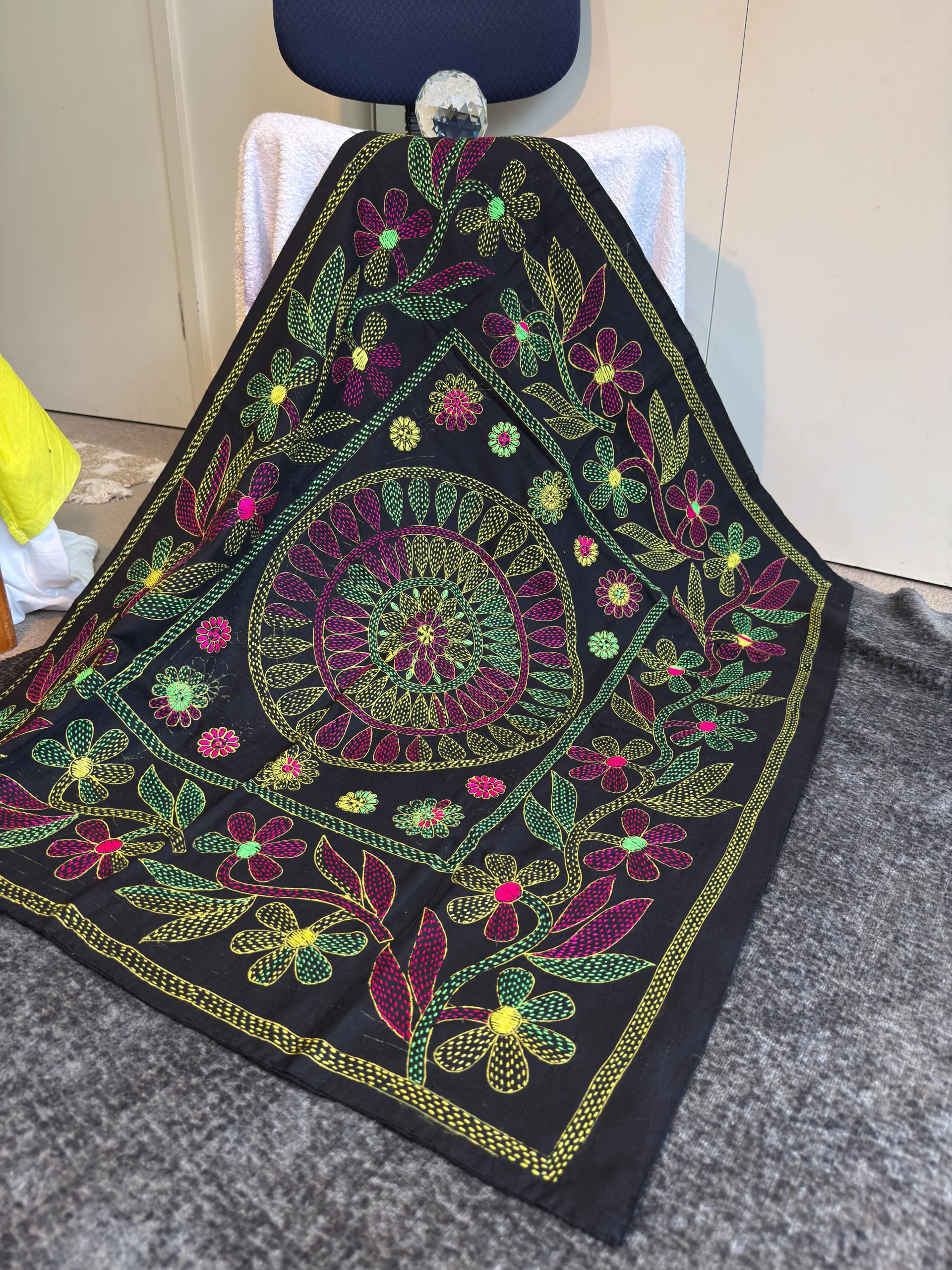 Kantha is a traditional Bengali quilting style—layers of cotton hand-quilted in running stitch and decorated with embroidered motifs. Soft, lightweight, and made to be used every day—personalised with a name, date, and a short line (4–5 words).